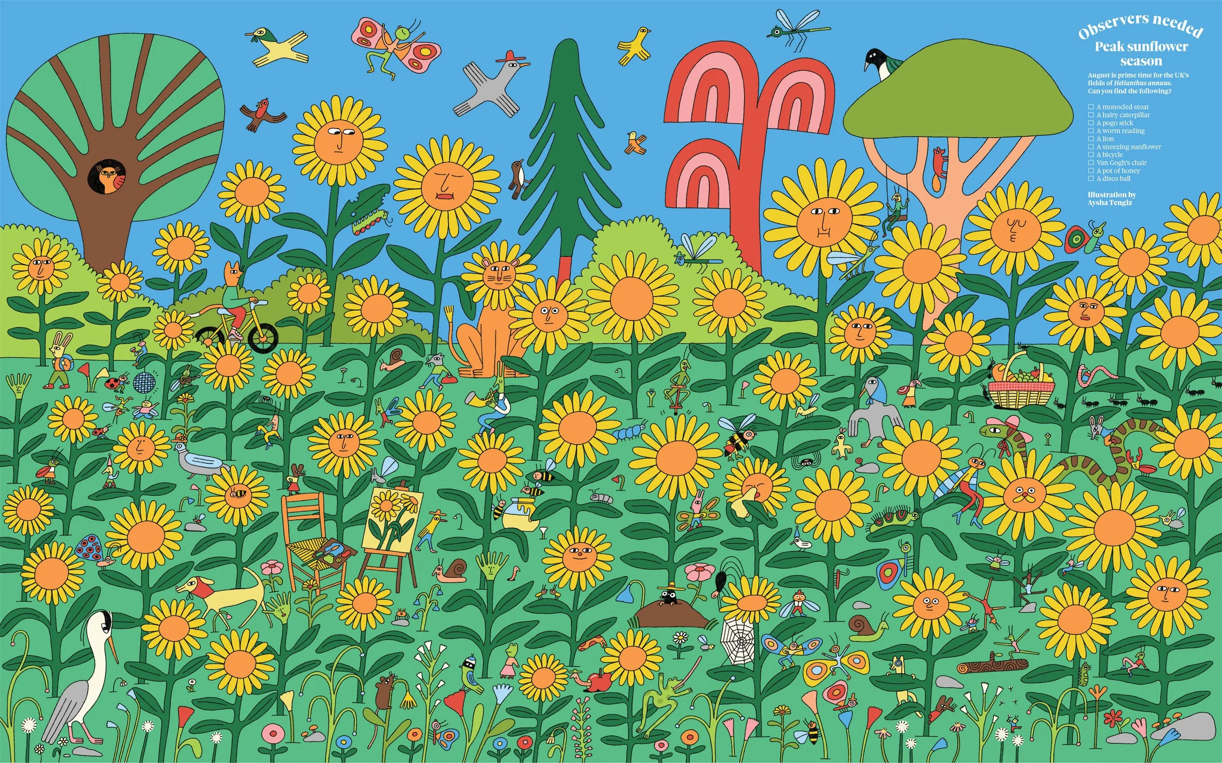 Double spread spot and search illustration for The Observer.